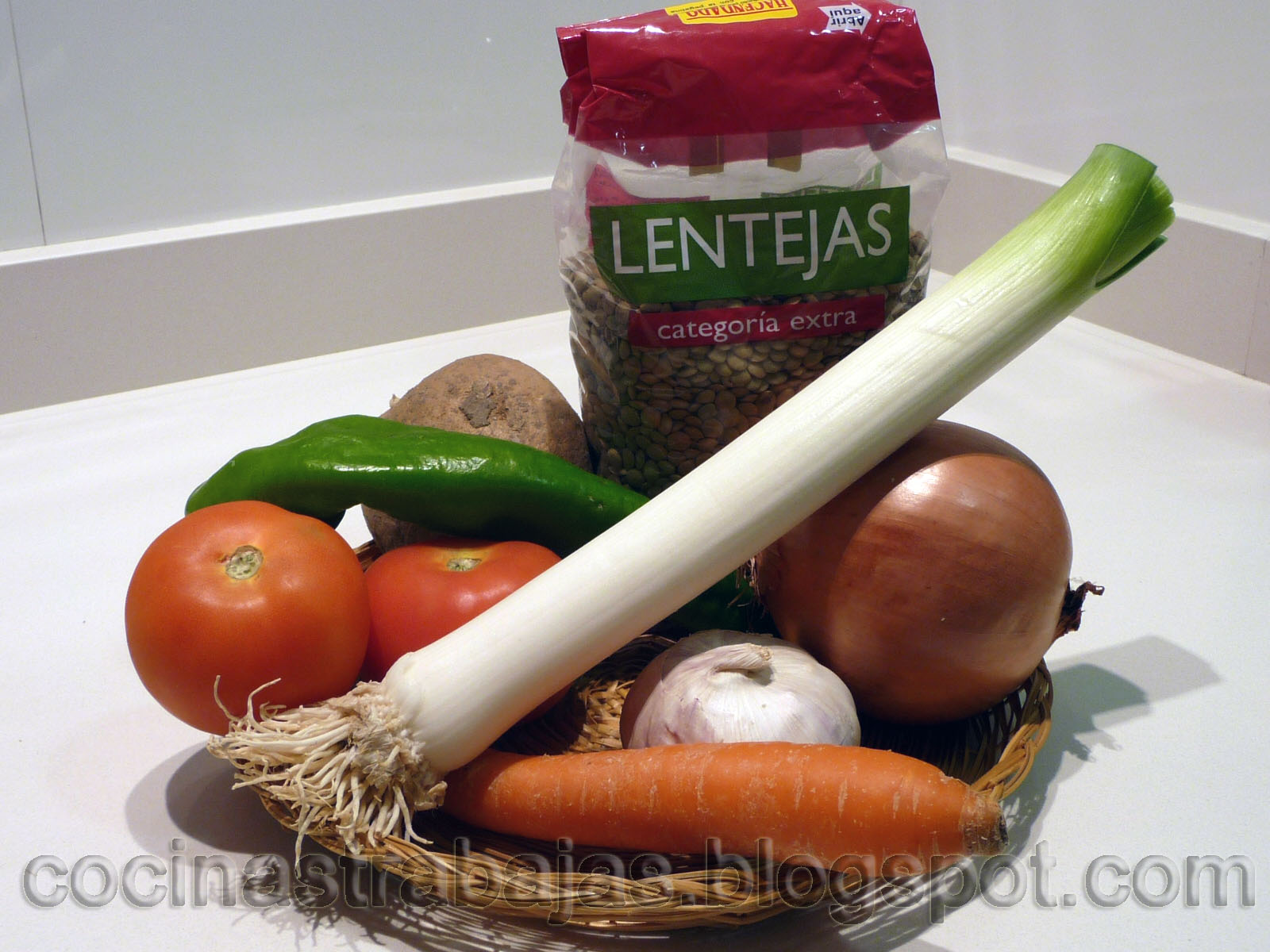 Cuando las verduras estén doradas, se añaden las lentejas escurridas, sin el agua del remojo.